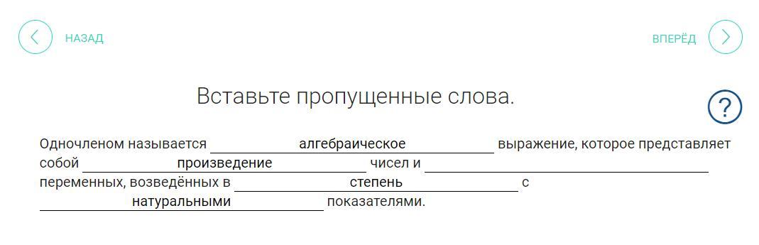 Одночленом называют алгебраическое выражение, которое представляет собой произведение чисел и различных переменных, возведённых в степень с натуральными показателями.