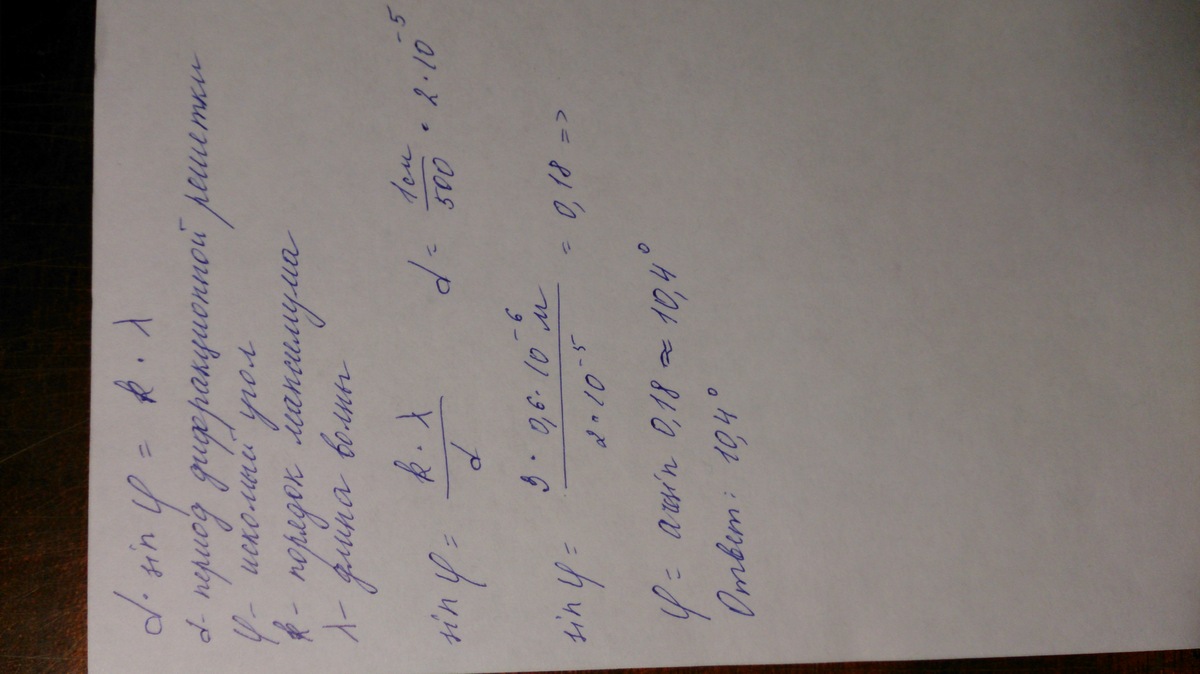 Под каким углом наблюдается максимум третьего порядка, полученный с помощью дифракционной решетки, которая имеет 500 штрихов на 1 см, если длина волны падающего нормально на решетку света (лямда)=0,6мкм