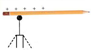 сли коснуться шарика электроскопа заряженным телом, листочки электроскопа занимают указанное на рисунке положение. Начальное положение листочков показано пунктиром.
