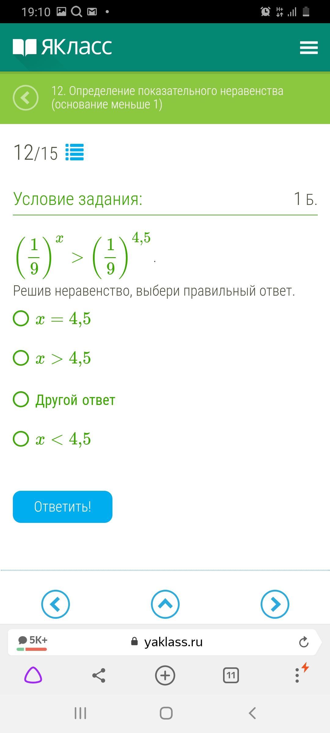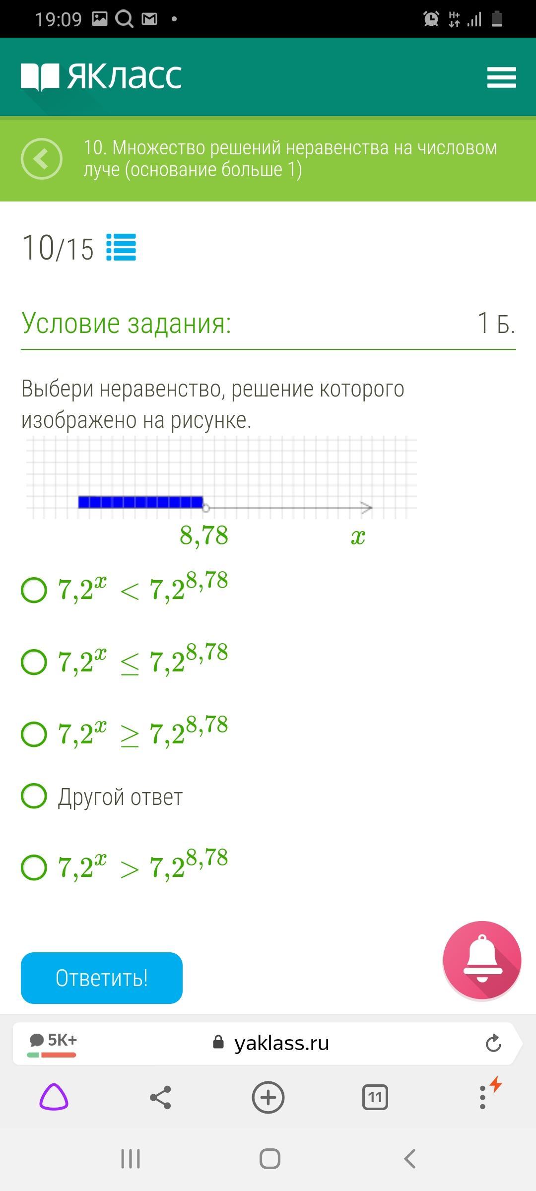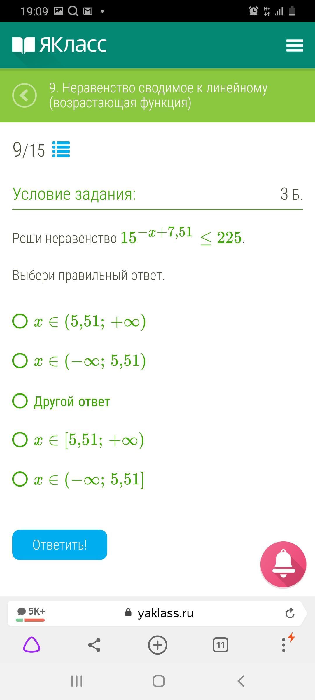 Правильный ответ пятый: икс принадлежит от минус бесконечности до 5,51 включительно