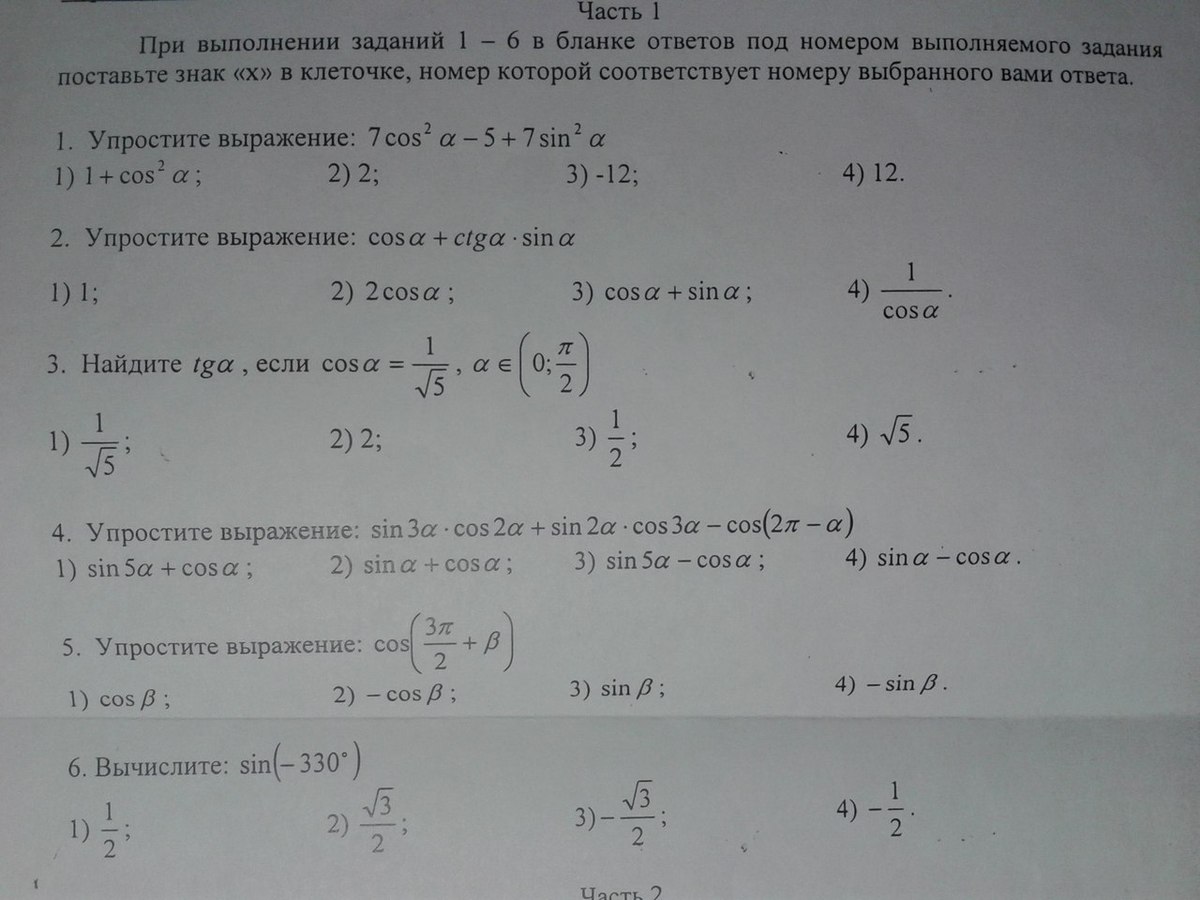 sina = 2/√5 tga = 2/√5 : 1/√5 = 2