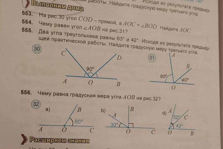 №556 а) 180-60=40; b) 180-(30+90)=60; d) 32+43=75