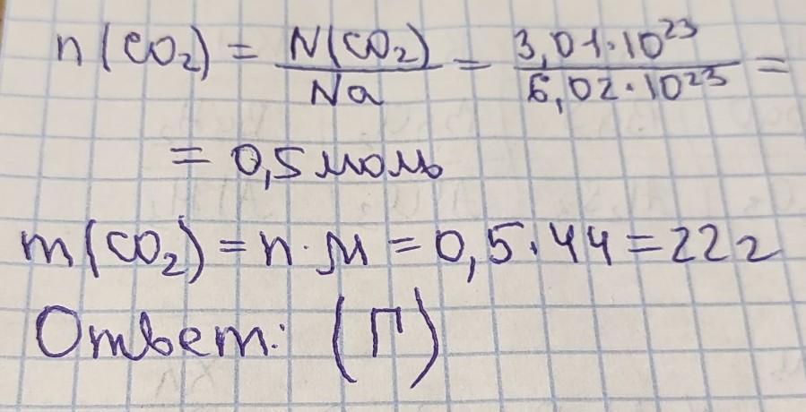5. Вычислите количество и массу углекислого газа с числом молекул 3,01 • 1023.