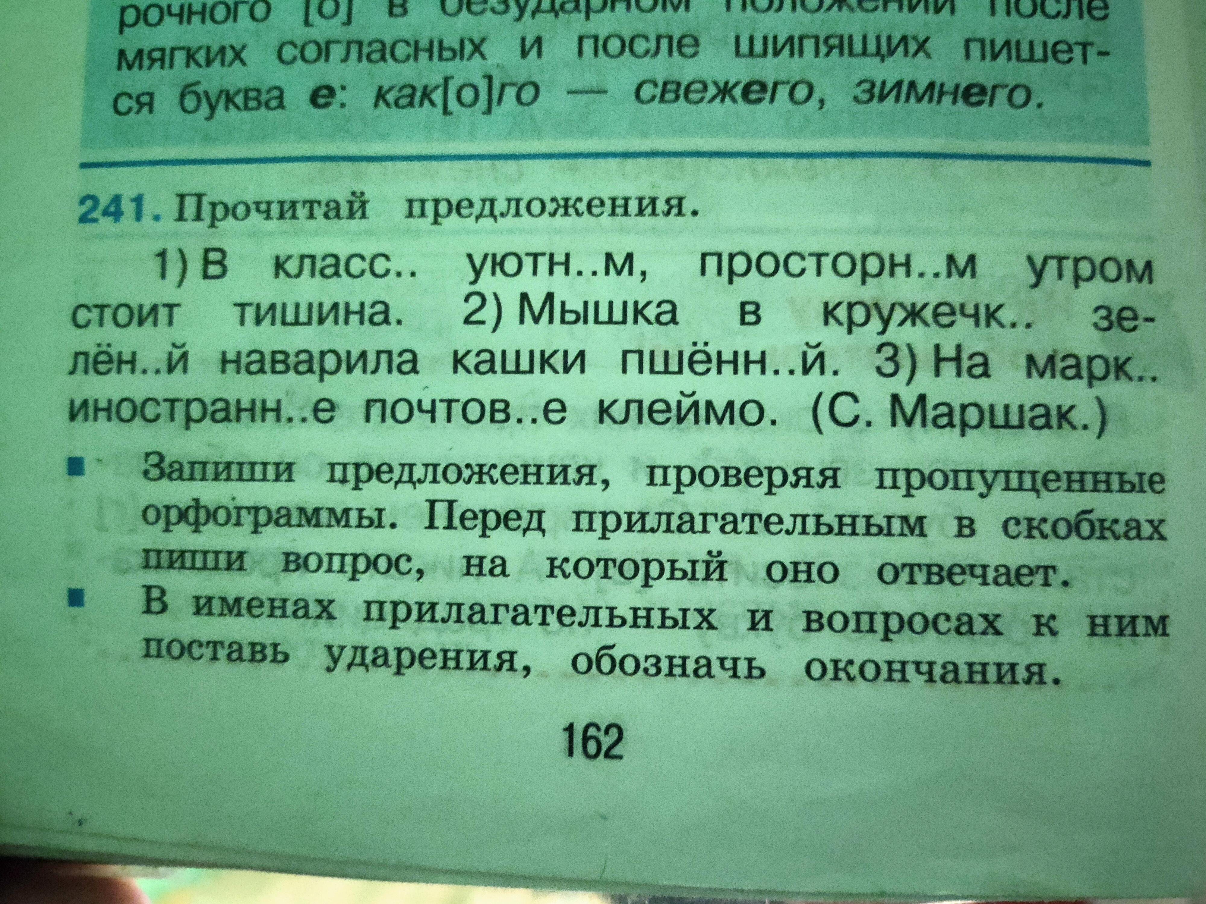 1) В классе, уЮтным, простОрным, утром стоит тишина. 2) Мышка в кружечке зелЁной наварила каши пшЁнной. 3) На марке инострАнное почтОвое клеймо