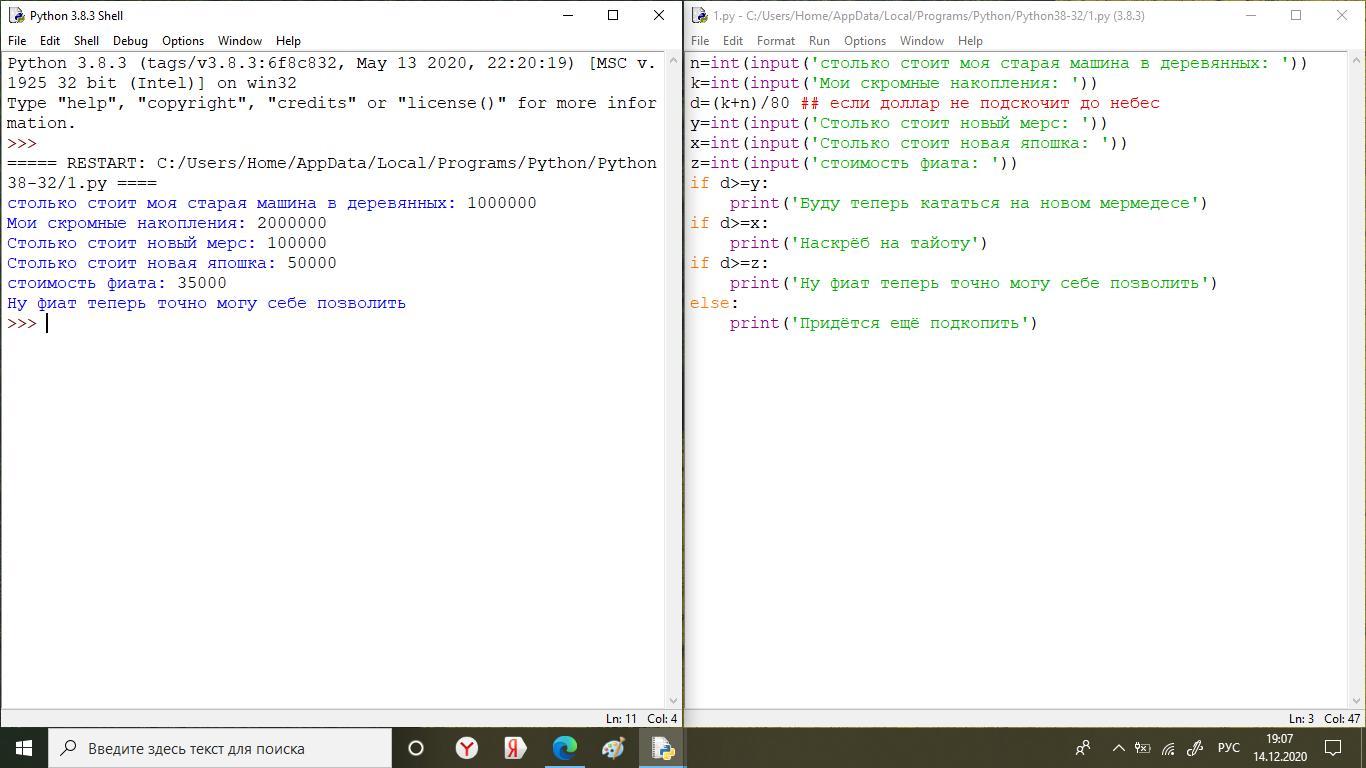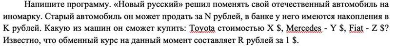 n=int(input('столько стоит моя старая машина в деревянных: '))
