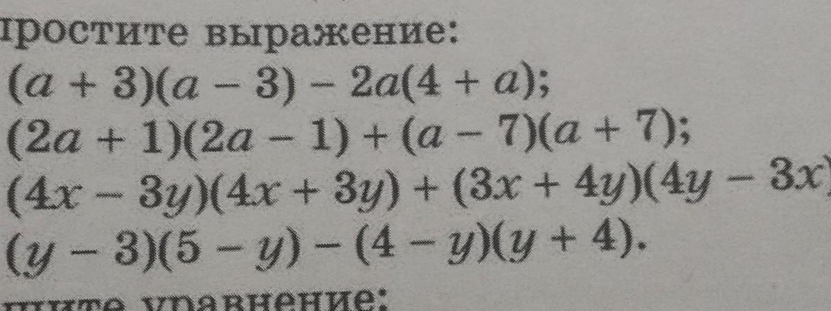 Відповідь:(a+3)(a-3)-2a(4+a)=a²-9-8a+2a²