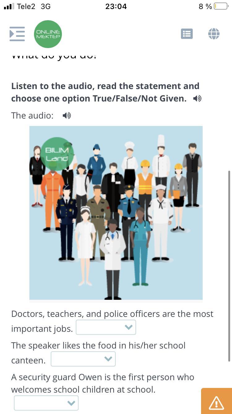 Listen to the audio,read the statement and choose one opinion true/false/not given