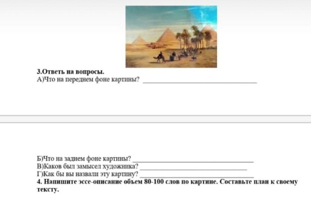 На переднем фоне видны пирамиды. В пустыне. Проходят караван и торговые пути проходили через это место. 100% прааильно