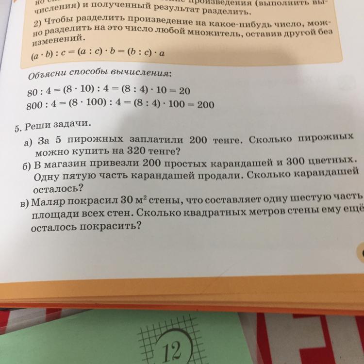 А) 1)что бы найти сколько стоит одно пирожное нужно 200 разделить на 5=40(тенге)-стоит 1 пирожное