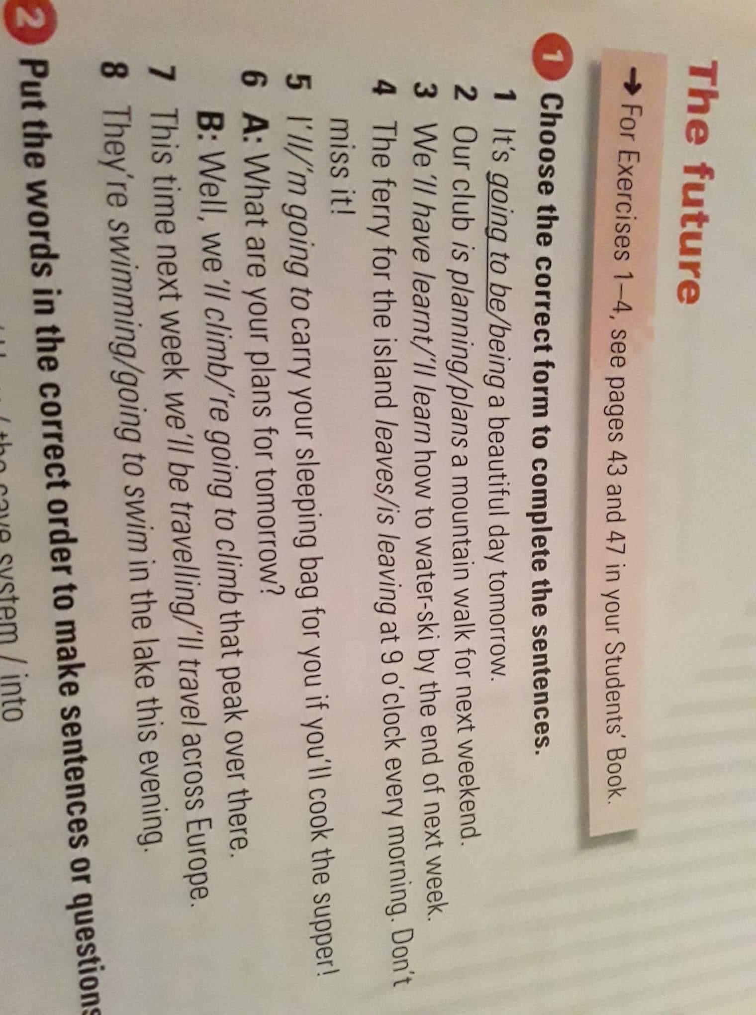 2. plans 3. `ll learn 4. leaves 5. `ll 6. going to 7. `ll travel 8. going to swim