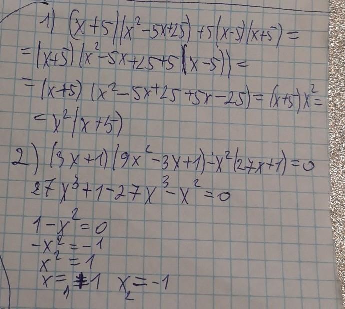 Спростіть вираз: (x+5)(x²–5x+25)+5(x–5)(x+5).
