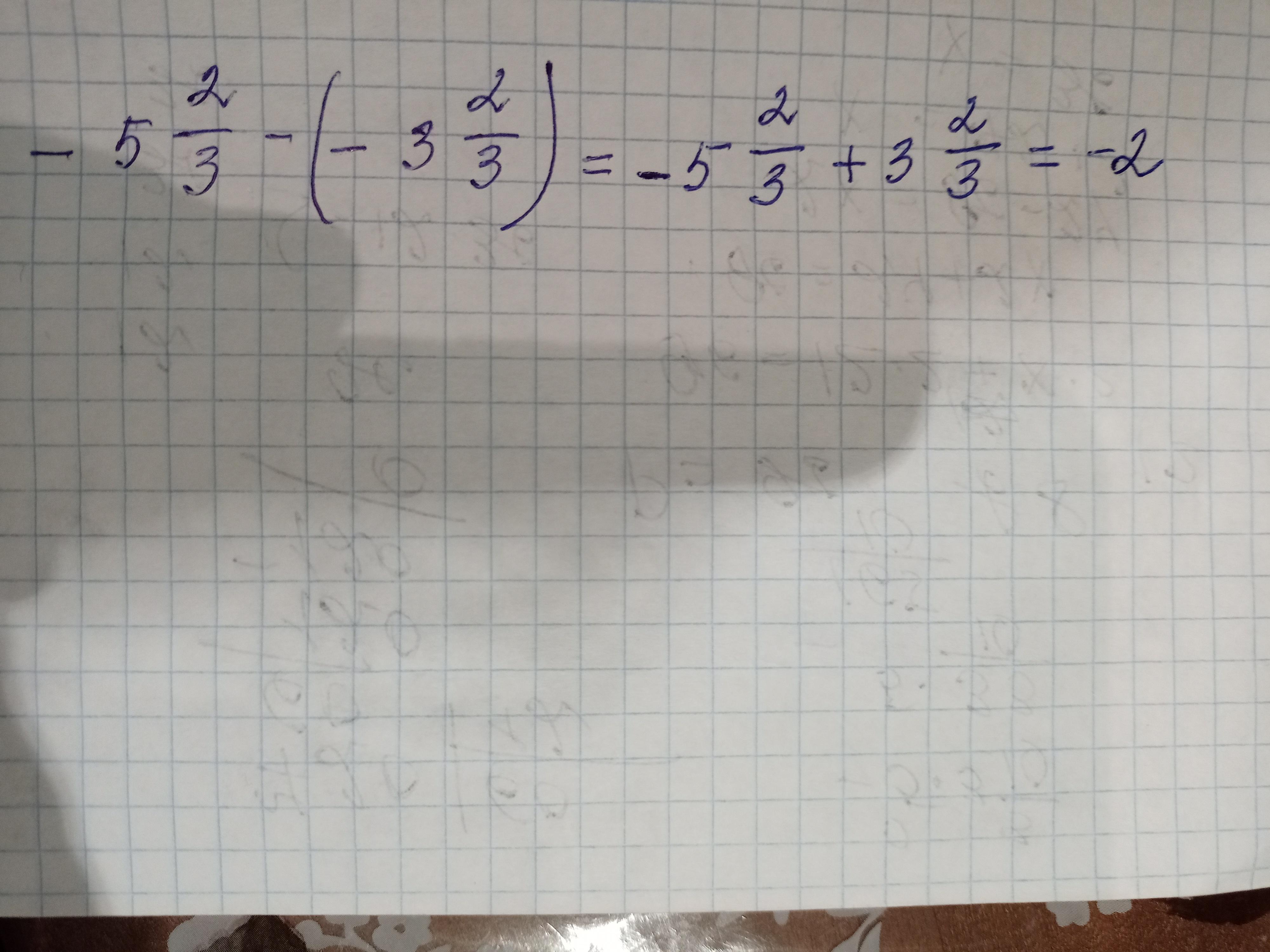 Найдите разность: (отрицательная дробь - пять целых две третьих) и (отрицательная дробь - три целых две третьих)