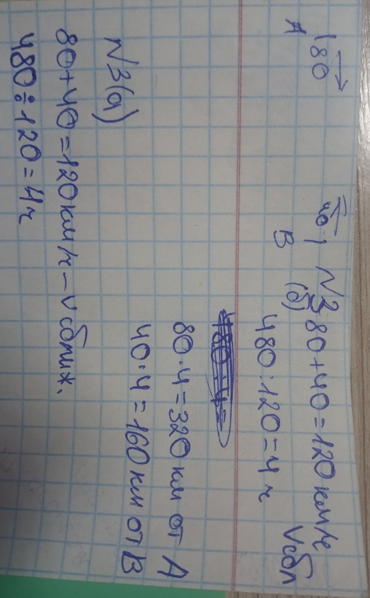 А) 480 км : 120 км/ч = 4 ч - время через которое они встретятся