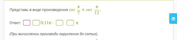 Представьте в виде произведения cos pi/7 + cos pi/13