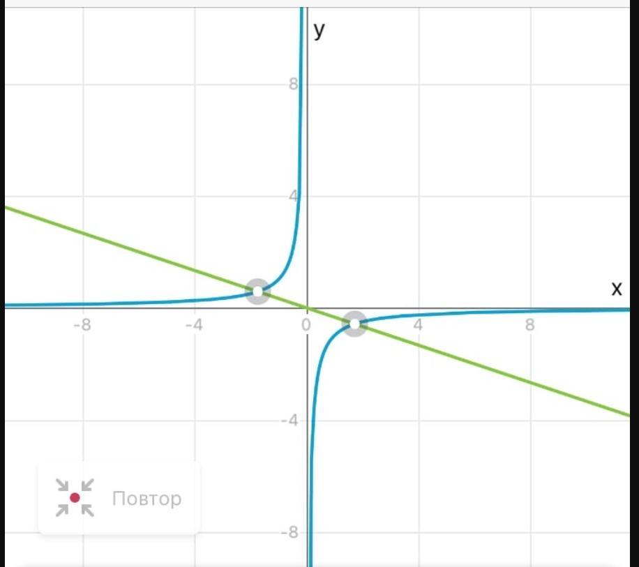 в итоге у тебя получается прямая вида y = kx пересекающая гиперболу