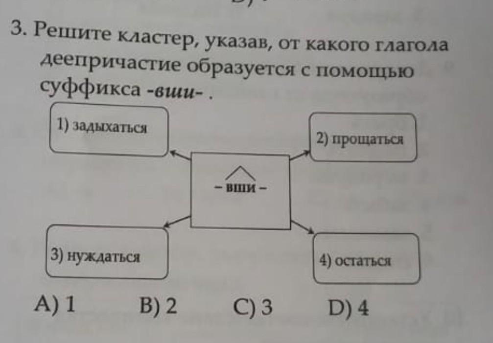 Решите кластер,указав,от какого глагола деепричастие образуется с помощью суффикса -вши-
