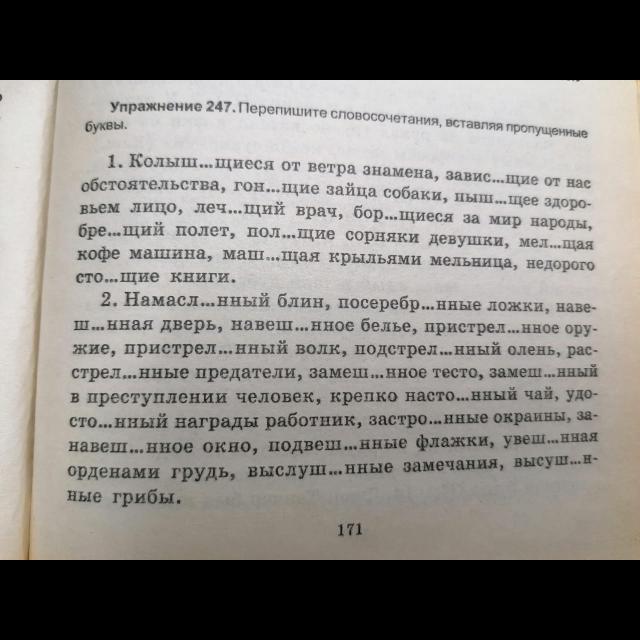2.Намасленный блин, посеребренные ложки, навешенная дверь, навешанное белье, пристрелянное оружие, пристреленный волк, подстреленный олень, расстрелянные предатели, замешенное тесто, замешанный в преступлении человек, крепко настоянный чай, удостоенный награды работник, застроенные окраины, завешенное окно, подвешенные флажки, увешанная орденами грудь, выслушанные замечания, высушенные грибы.