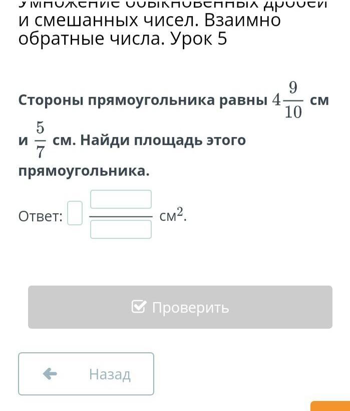 4 целых 9/10 см * 5/7 см = 49/10 см * 5/7 см = 7/2 см² = 3 целых 1/2 см²