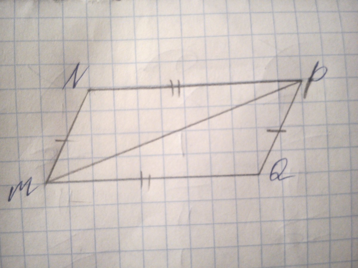 Дано :треугольник MNP= треугольникy PQM;MN=PQ;MP=NQ