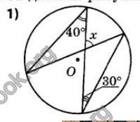 Здесь та же самая ситуация. На рисунке я показала разными цветами, какие углы опираются на одну и ту же дугу.