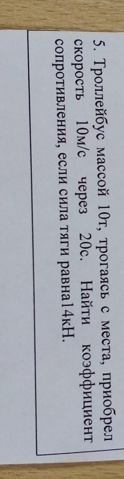 m (масса) = 10 т (10 * 103 кг); троллейбус двигался с места (V0 (нач. скорость) = 0 м/с); S (путь) = 50 м; V (скорость, приобретенная троллейбусом) = 10 м/с; F (сила тяги) = 14 кН (14 * 103 Н).
