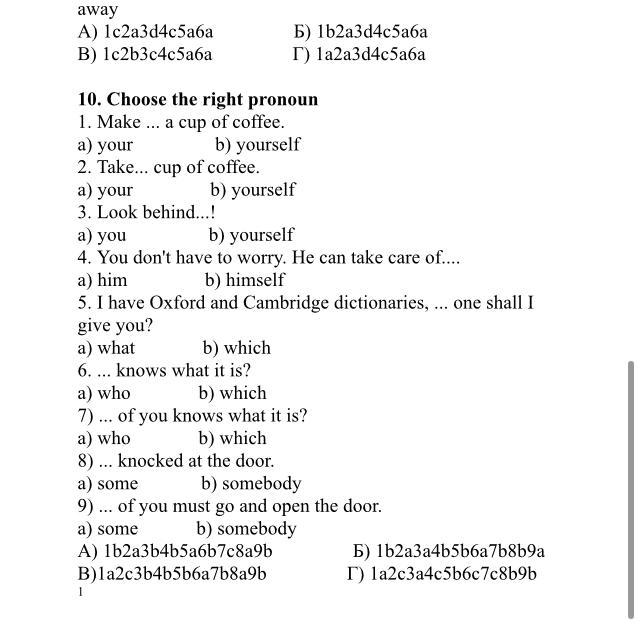 Б) 1b2a3a4b5b6a7b8b9a