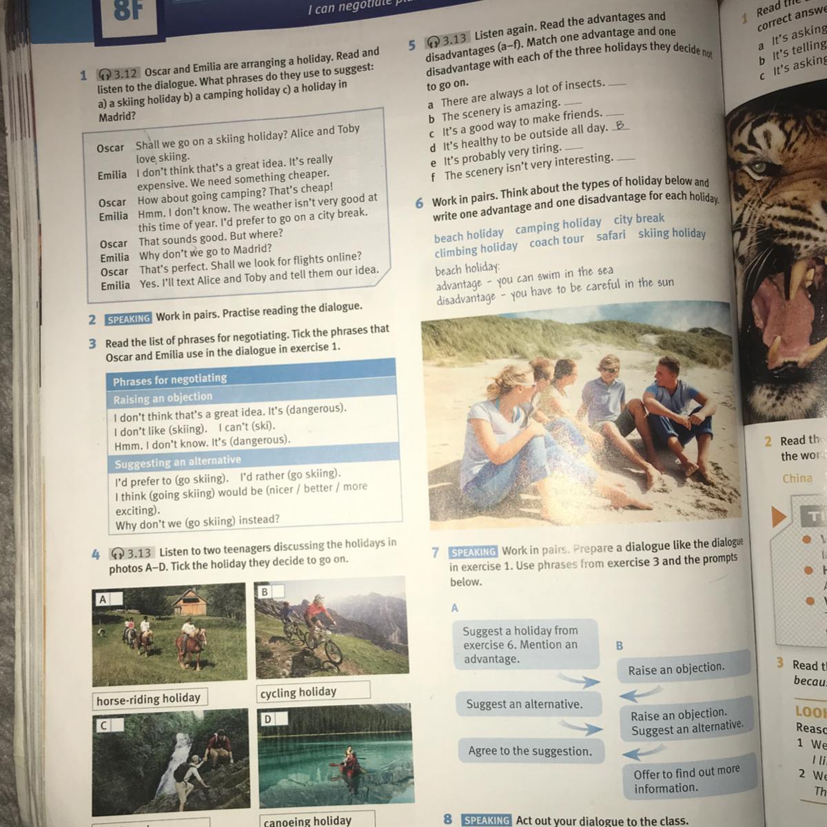 1)Предложите вид отдыха из упражнения 6. Назовите преимущества (Например: "I'd really like to go on a trip. What about the beach holiday?"