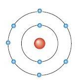 На рисунке изображен атом, в котором вокруг ядра расположены 9 электронов на двух электронных уровнях.