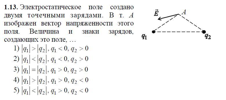 1) продолжить линию q2-A, провести линию от Е к продолжению линии q2-A. Эта линия (от Е) должна быть соответственно параллельна линии q1-A. Вот Вам вектор заряда q1 (направление от А к q1).