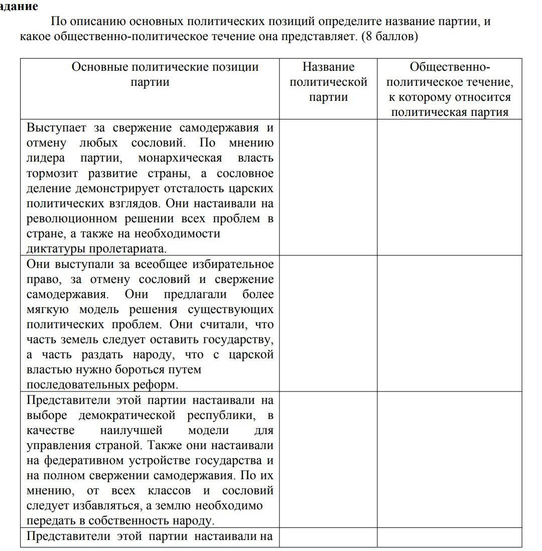 По описанию основных политических позиций определите название партии, и какое общественно-политическое течение она представляет.