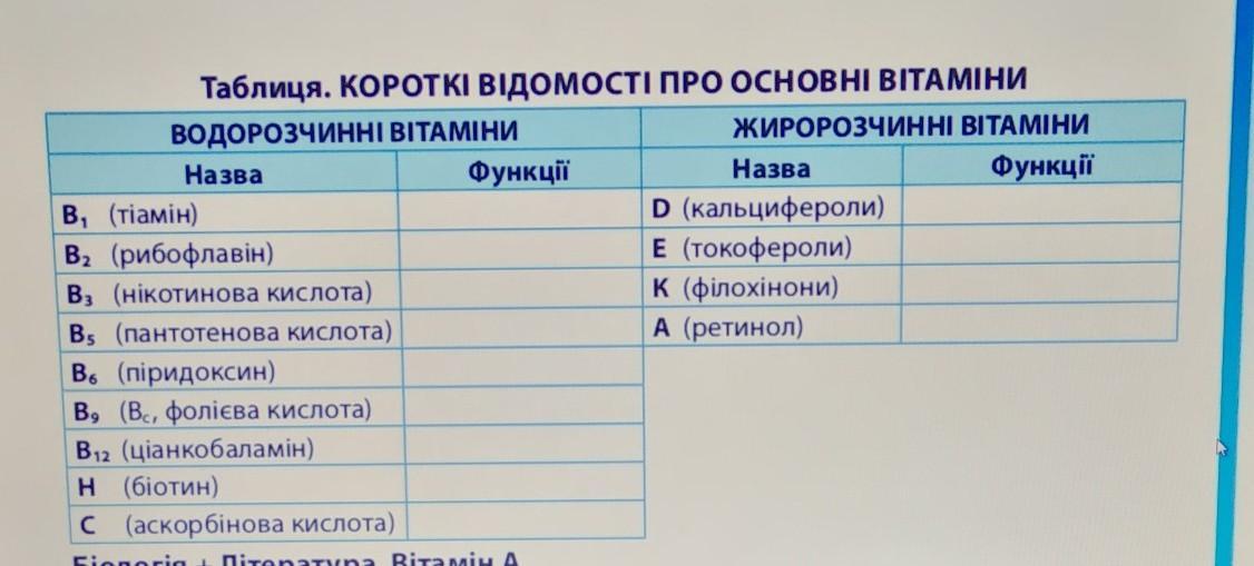 А - окислювально-відновні процеси, регуляція синтезу білків, сприяє нормальному обміну речовин. формування кісток і зубів і жирових відкладень; необхідний для росту нових клітин, уповільнює процес старіння.