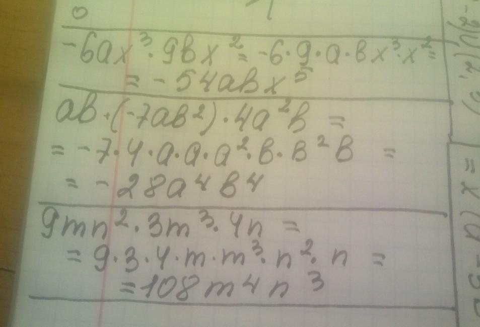 в)9mn(2cтепень) х 3m(3степень) х 4n