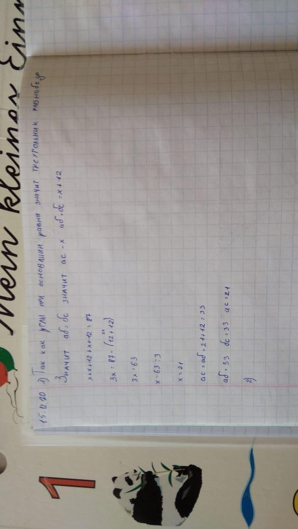 В треугольнике АВС периметр треугольника равен 87 см, угол А равен углу С, разность сторон АВ и АС равна 12 см. Найдите стороны треугольника.
