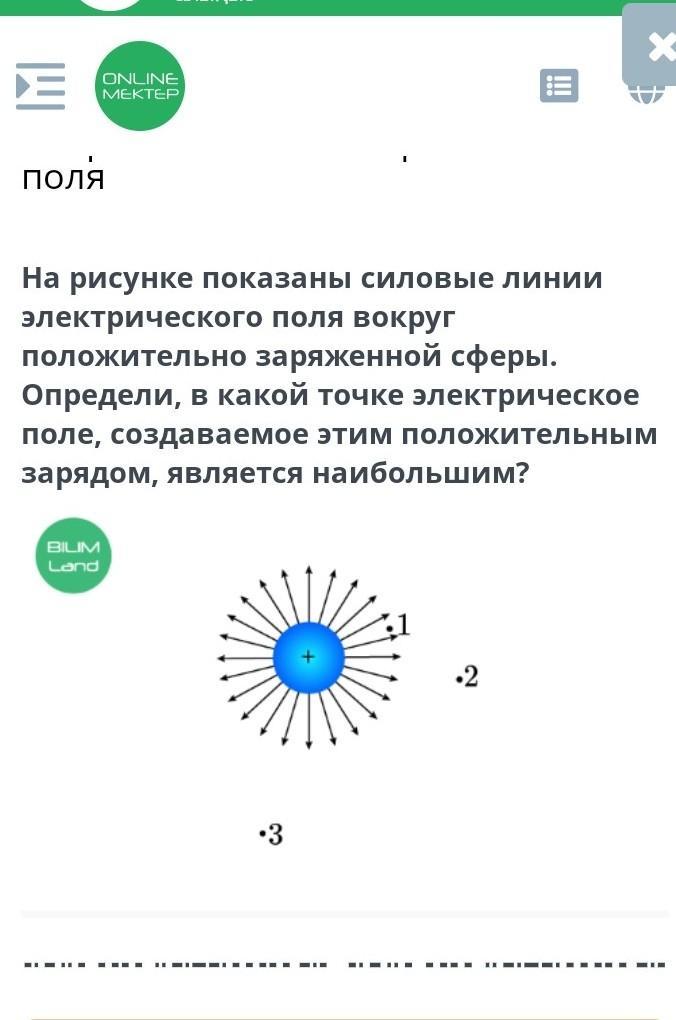 рисунке показаны силовые линии электрического поля вокруг положительно заряжен ой сферы. Определи, в какой точке электрическое поле