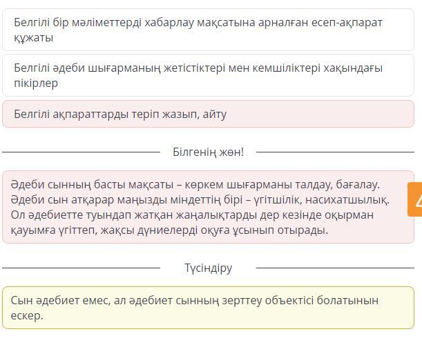 Белгили адеби шыгарманын жетистиктери мен кемшиликтери хакандагы пикирлер осы жауап дурым