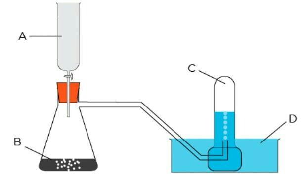 A-перекись водорода,В-диоксид марганца,D-вода,получается C кислород.