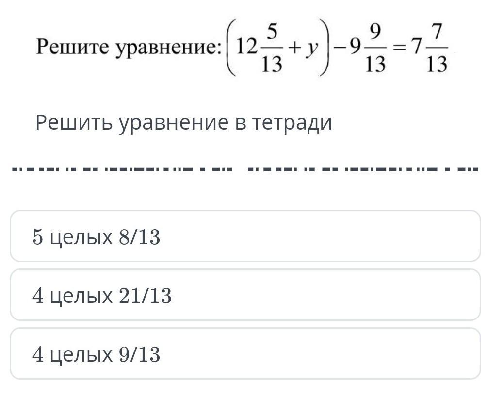 4целых 9/13 подходит, но в ответе опечатка, должно быть 7 целых 5/13.