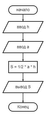 Составить блок- схему алгоритма, вычисляющего площадь треугольника по известной высоте h и основанию a