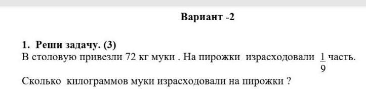 В столовую привезли 72 кг муки. На пирожки израсходовали 1 часть.
