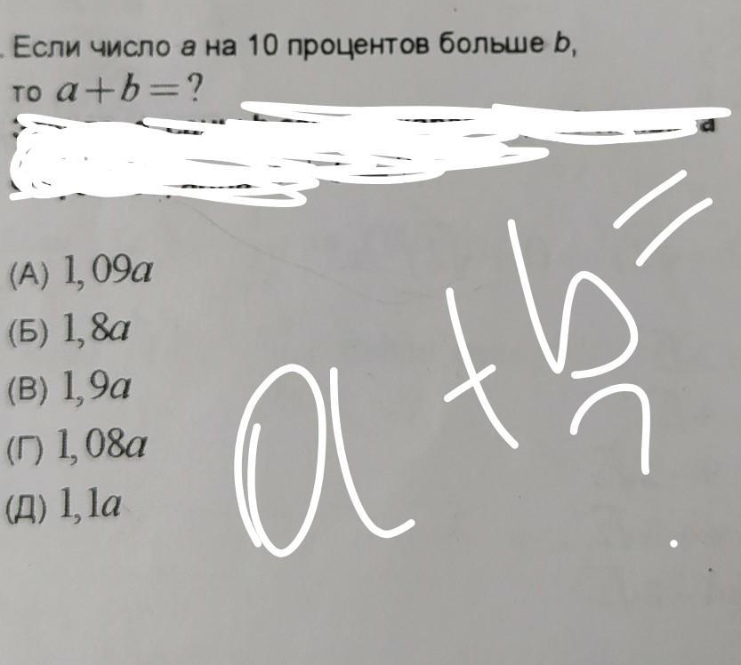 Если а больше б на 10% , то значит если б возьмём за 100% , то а будет на 10% больше , тоесть 110%, 100+110=210%