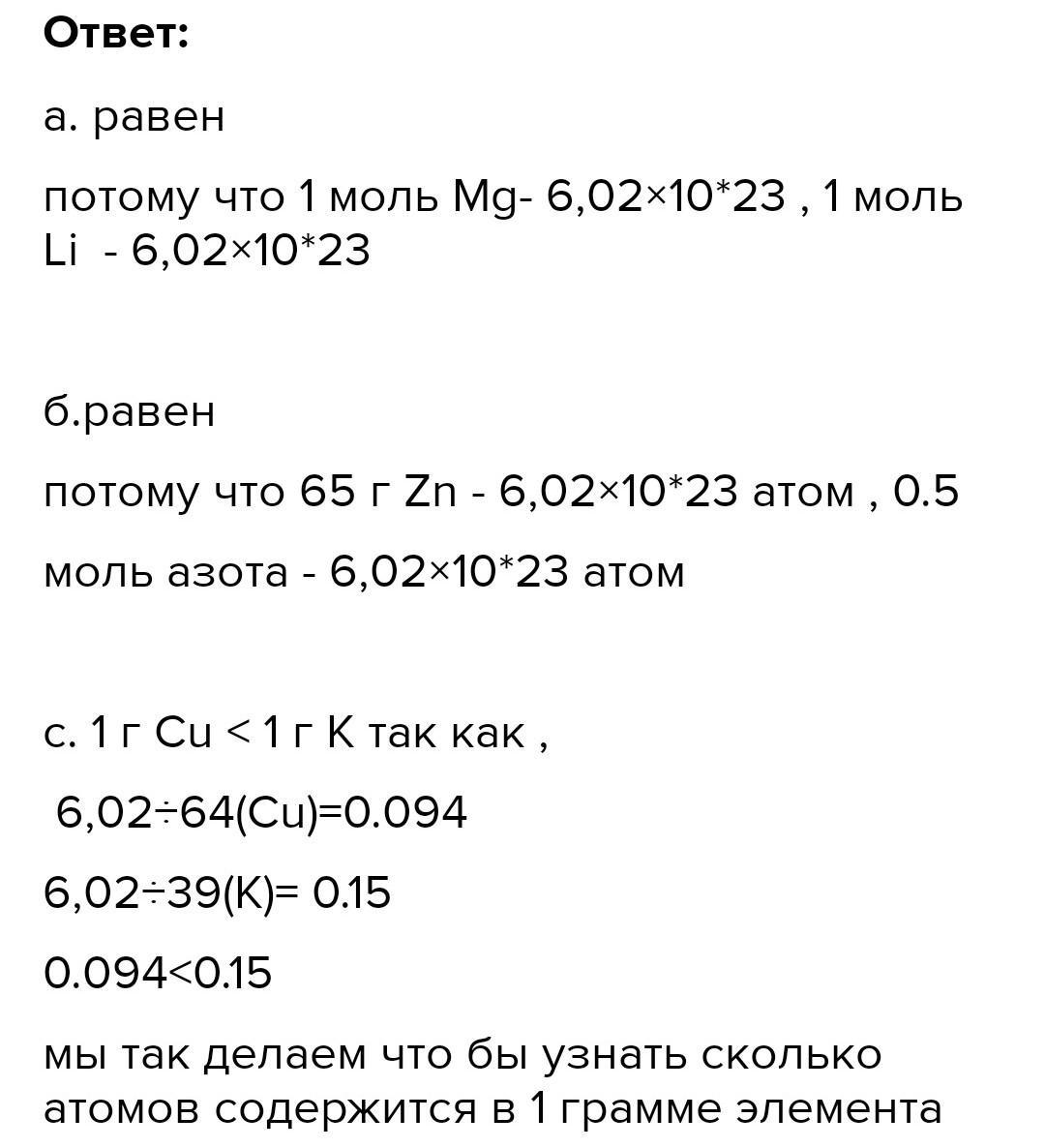 (в) в 65 г цинка или в 0,5 моль азота, так как _________________________ (2)