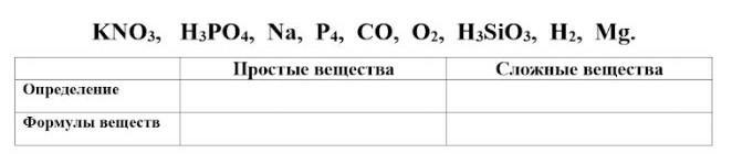 По элементному составу различают простые вещества и сложные вещества. Дайте определение простым и сложным веществам. Из предложенного списка веществ выпишите отдельно простые и сложные вещества