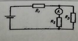 Определите силу тока показываемую амперметром в схеме.U=4 R1=6 R2=4 R3=10.Сопротивлением амперметра пренебречь.