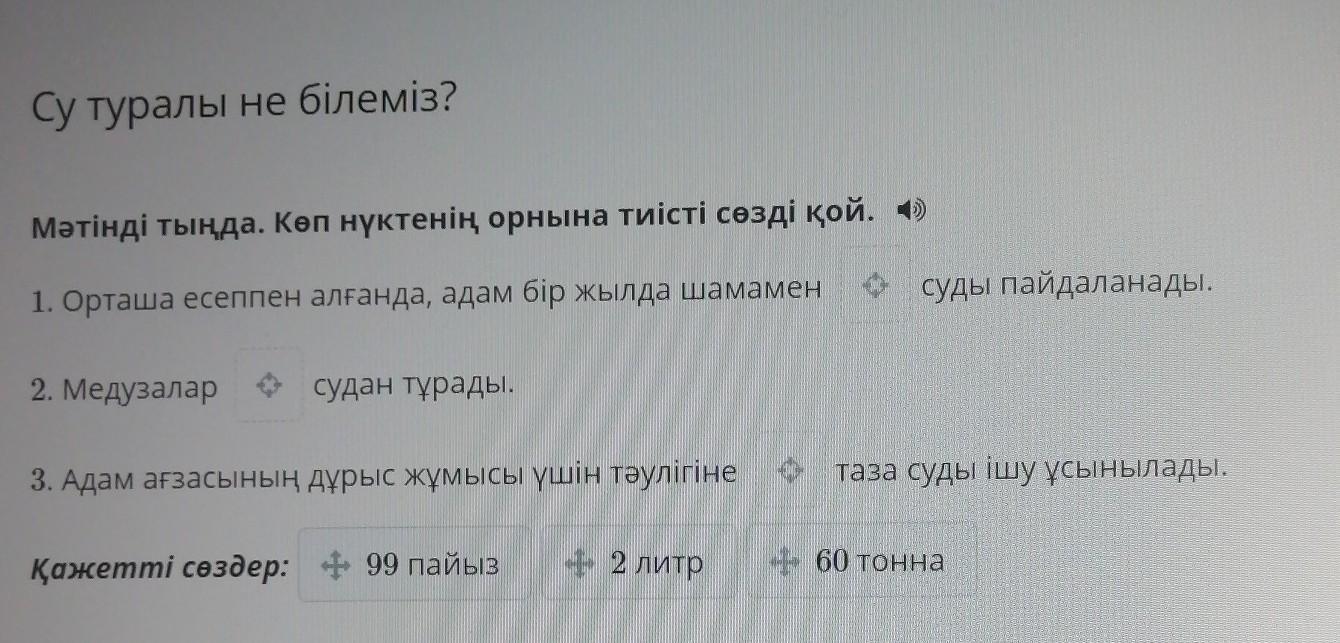 Мәтінді тыңда. Көп нүктенің орнына тиісті сөзді қой. 4)
