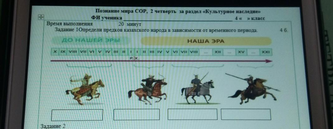Задание 1Определи предков казахского народа в зависимости от временного периода