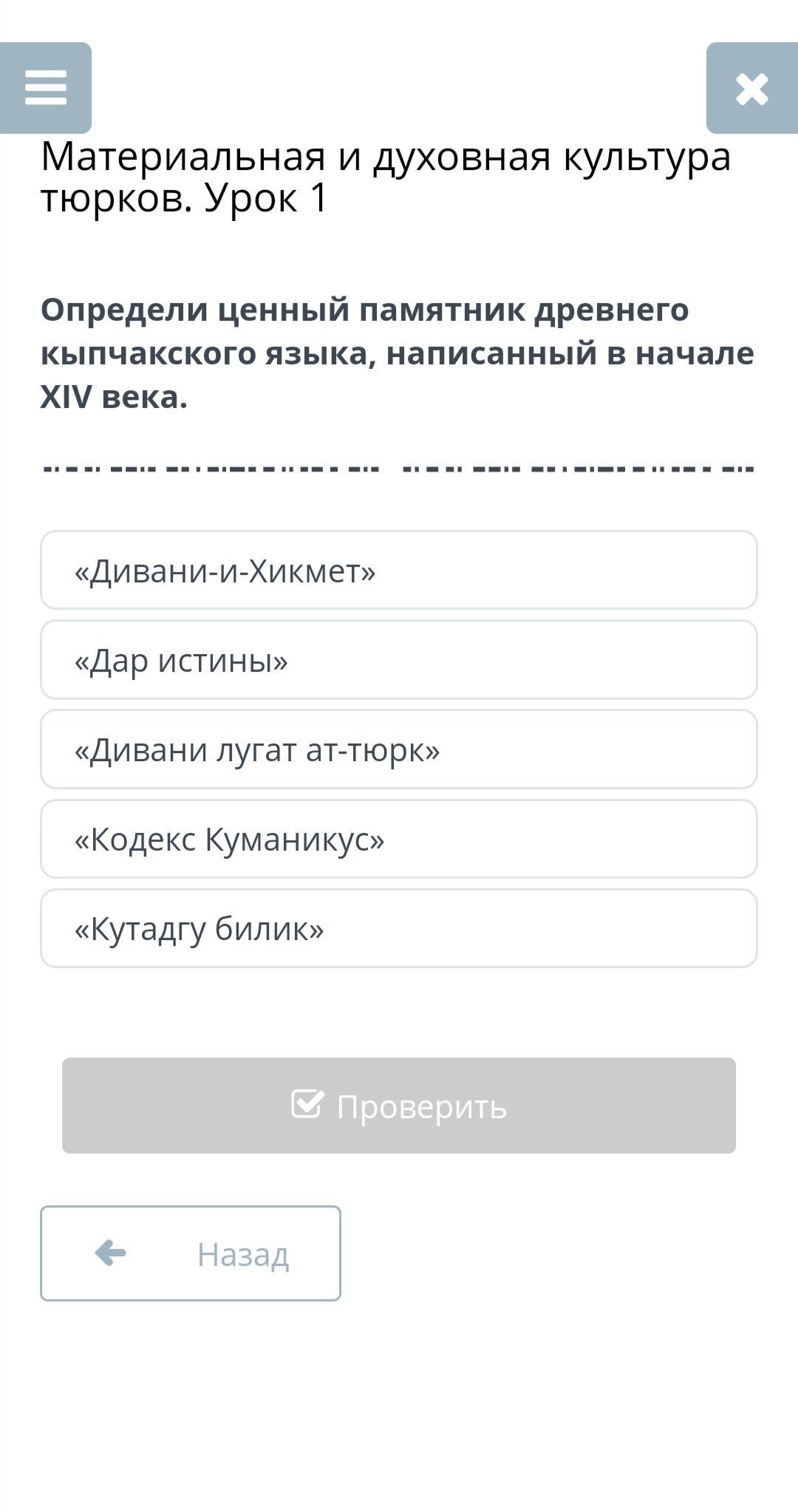 Определи ценный памятник древнего кыпчакского языка, написанный в начале XIV века.