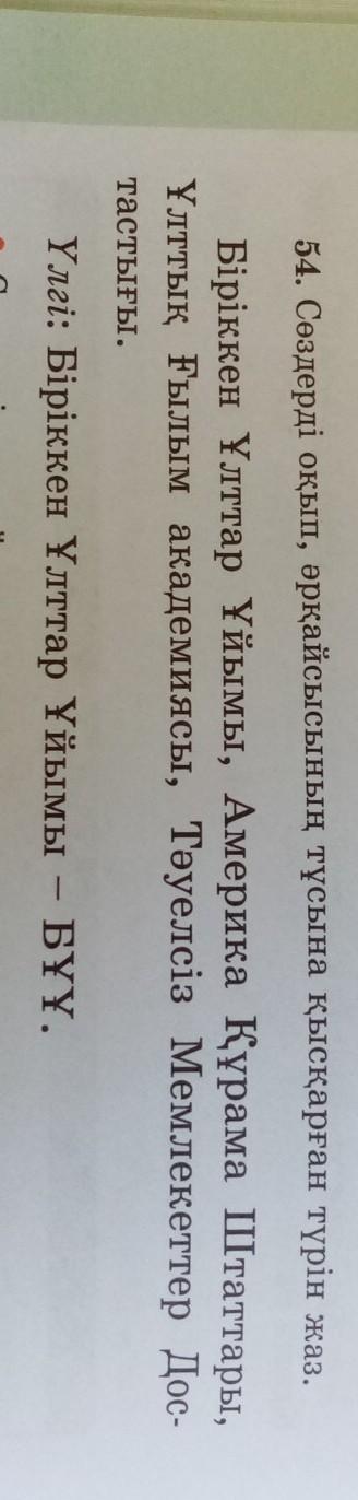 54. Сөздерді оқып, әрқайсысының тұсына қысқарған түрін жаз.