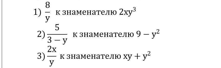 1) 8/у. домножаем числитель и знаменатель на недостающие 2ху², тк один у в знаменателе уже есть.