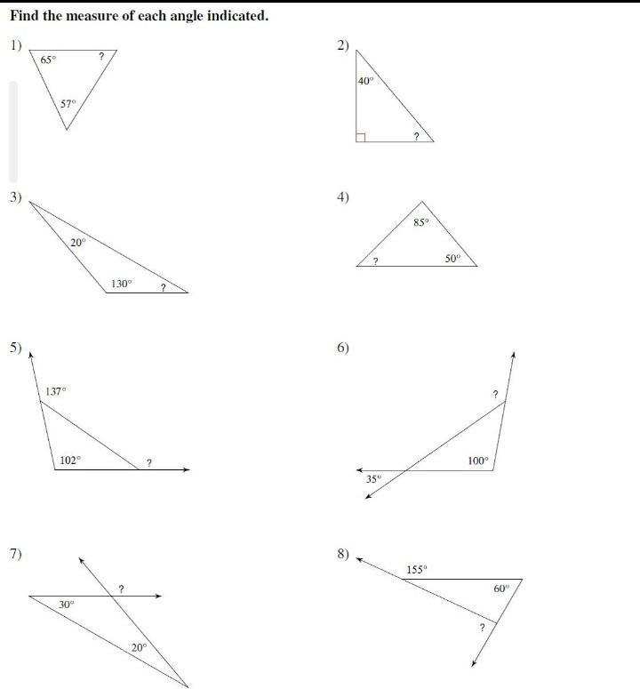 4) 180 - (85 + 50) = 180 - 135 = 45