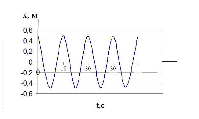 Циклическая частота колебаний ω = 2πν = 2π · 0,1 = 0,2π (рад/с)
